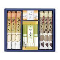 風味の良い信州そば、のど越しの良い細うどん、彩り鮮やかで香り豊かな抹茶そばをセットにしました。 信州そば・細うどんセット(抹茶そば 80g×4、信州そば 120g×3、細うどん 120g×3) / 蕎麦 うどん 詰め合わせ ギフト 食品開発株式会社 商品番号: 2990134