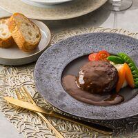 六本木リューズ飯塚隆太シェフが監修する赤ワインとトマト、バターで奥深い味わいに仕上げたデミグラスソースに、温めたときにジューシーさが残るよう軽く焦げ目をつけて焼いたハンバーグを閉じ込めました。レンジアップでお召し上がりいただけます。
