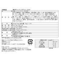 ■原材料名/食品添加物: 牛肉(兵庫県産)、牛脂(兵庫県産)、玉葱(国産)、卵白、パン粉、粉末状植物性たん白、麩、りんご、食塩、砂糖、コショウ/加工でん粉、焼成カルシウム、調味料(無機塩等)、ソース[ルウ(小麦粉、ラード)、ワイン、ケチャップ、トマトペースト、玉葱、しょうゆ、牛肉、砂糖、みりん、食塩、ポーク調味エキス、ビーフ調味エキス、たん白加水分解物、チキン調味工キス、人参エキス、香辛料、酵母エキス、ガーリックバウダー/カラメル色素、増粘剤(加工でん粉)、調味料(アミノ酸等)、香辛料抽出物]、(一部に乳成分・小麦・卵・牛肉・豚肉・鶏肉・ 大豆・りんごを含む)