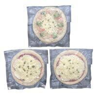 チーズの濃厚な味わいが楽しめるピザセットです。 北海道こだわりチーズピザセット3枚 (マルゲリータ2枚、シーフードピザ1枚) 食品開発株式会社 商品番号: 1480066-1