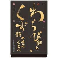 ※写真はイメージです。商品の正確な仕様については商品説明の規格をご確認ください。 本蕨・栗・小豆の3種の「わらび餅」と、純と黒糖の2種の「くず餅」に、「きな粉・抹茶きな粉・黒みつ・和三盆みつ」からお好きな組み合わせを選んでお召し上がりいただける、食べくらべをお楽しみいただけるセット。