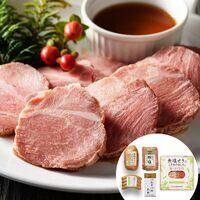 発色剤を使用せずに、塩・砂糖・香辛料などを使用して仕上げました。素材の美味しさを活かした無塩せきのセットです。ローストポークは、北海道産の豚肩肉に塩をすり込み、ひとつひとつ丹念に表面を手焼きしました。 低温でじっくりと加熱することで柔らく仕上がっております。