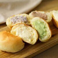 ■規格:くりーむパン(カスタード×2、生クリーム&カスタード×1、抹茶×1、小倉×1、チョコレート×1)、本気のめろんぱんメロンクリーム×4