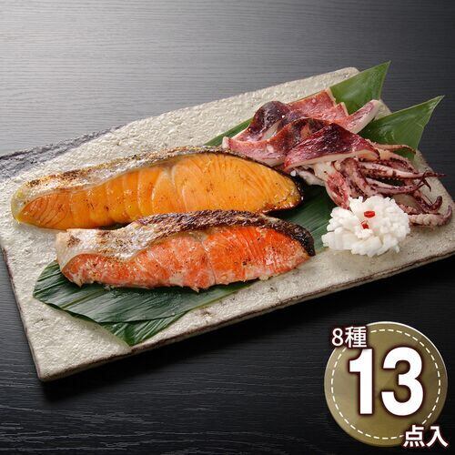 ■規格:秋鮭甘味噌漬切身70g×2、しまほっけ甘味噌漬切身70g×2、銀鱈粕漬切身70g×1、トラウトサーモン粕漬切身70g×2、真鱈粕漬切身70g×2、紅鮭西京漬切身70g×2、キングサーモン西京漬切身70g×1、真いか粕漬け120g×1
