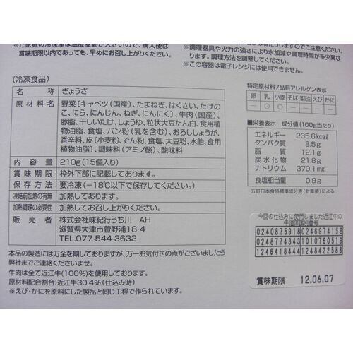 滋賀 近江牛 餃子 14g×15個 食品開発株式会社 商品番号: 0130151